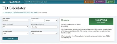A CD fee calculator is a instrument that helps you calculate the potential earnings on a CD funding. It takes into consideration the rate of interest, the deposit quantity, and the time period (size) of the CD.