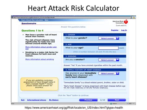 A coronary heart assault danger calculator is a instrument that may allow you to estimate your chance of getting a coronary heart assault. It considers varied components, together with your age, gender, blood strain, levels of cholesterol, smoking habits, and household historical past.