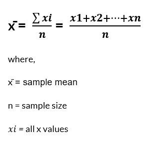 | Formulation: | x̄ = Σx / n |