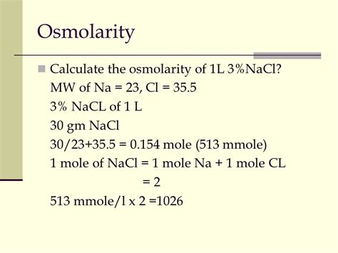 Osmolarity is a elementary idea in understanding the conduct of options and their interactions with organic programs. By mastering the strategies for calculating osmolarity, you achieve a robust device for analyzing and deciphering information in numerous scientific and scientific purposes.