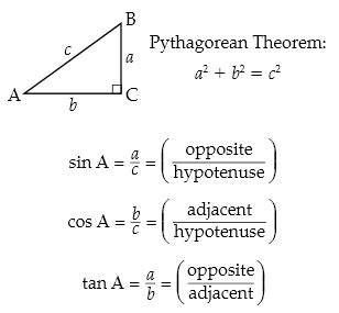 | b, c | b² = c² – a² | cos(θ) = b/c |