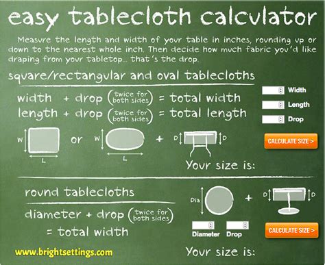 Smartphones and tablets additionally provide tablecloth dimension calculator apps. These apps are handy and simple to make use of, permitting you to calculate the perfect tablecloth dimension on the go.