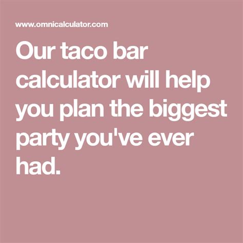 Hola readers! Are you able to dive into the colourful world of taco bars? Whether or not you are planning an informal fiesta or a grand celebration, our taco bar calculator is your secret weapon for making certain a scrumptious and satisfying unfold.
